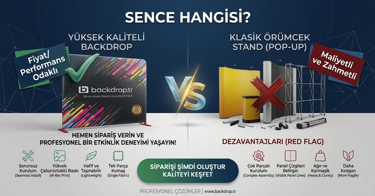 Eğer siz de karmaşık, ağır ve demode sistemlerle vakit kaybetmek istemiyorsanız; seçiminizi Yüksek Kaliteli Backdrop sistemlerinden yana yapın. Markanızı bir adım öne taşımak, panel çizgileriyle uğraşmamak ve dakikalar içinde profesyonel bir stand kurmak için www.backdrop.tr adresini ziyaret edebilirsiniz.