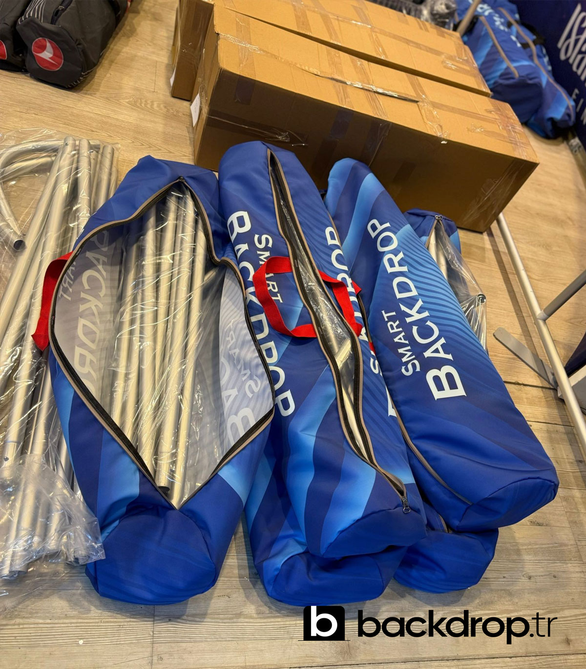 Boru pano stand sadece 2 dakika 14 saniye de tek kişi kurabilir. Kurumsal etkinliklerinizde, fuar standlarınızda veya lansman organizasyonlarınızda profesyonel bir çekim alanı oluşturmak artık çok daha hızlı ve zahmetsiz. Backdrop.tr olarak, markanızın prestijini yansıtan portatif stüdyo çözümlerimizle etkinlik alanlarınızı profesyonel birer prodüksiyon merkezine dönüştürüyoruz.